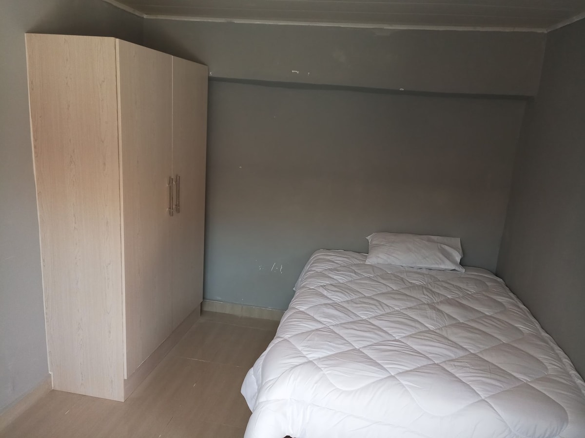 Peaceful, centrally-located. Cosy bed-sitter in yard with main house, queen-size bed, sleeper couch, closet and air-conditioned. Shower, toilet, kitchen space with fridge, microwave, gas-stove. Working table/dining table and a TV with WIFI. Swimming pool and shed with outside chairs available. Beautiful environment with trees and flowers. Cleaning services available. Laundry and ironing services at a cost. Electricity backup available with solar. Wi-Fi available when loadshedding is on.