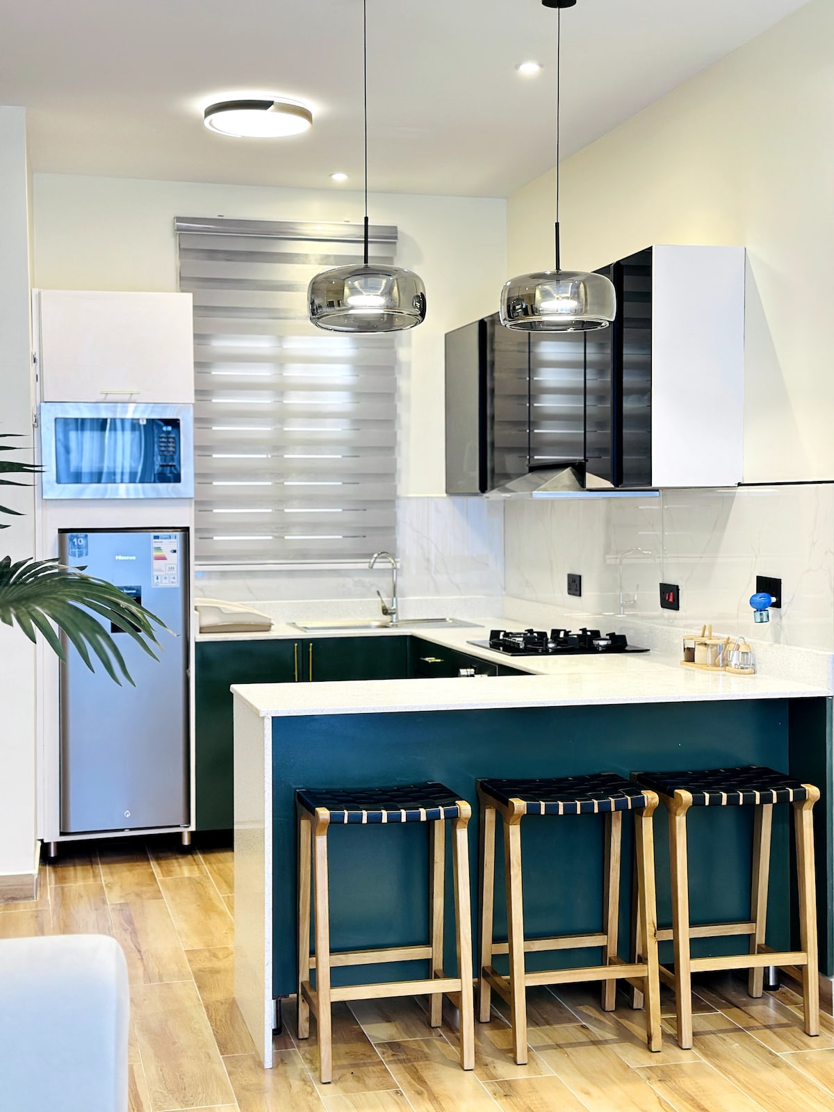 Stökkvið í frí í friðsæla tveggja hæða eign með 4 svefnherbergjum í virtu hverfi Akright City. Fullkomið fyrir fjölskylduafdrep og samkomur með vinum. Slakaðu á í sólbjörtu stofu, stígðu út á tvær svalir til að fá útsýni yfir sólsetrið, slakaðu á í lúxus hjónasvítu með háhraðaneti Þægindi þín skipta höfuðmáli. East access to the Voice Mall, or a short drive to Victoria Mall and the shores of Lake Victoria. Flugvöllurinn er í nokkurra mínútna fjarlægð og er tilvalin bækistöð fyrir allar ferðir.