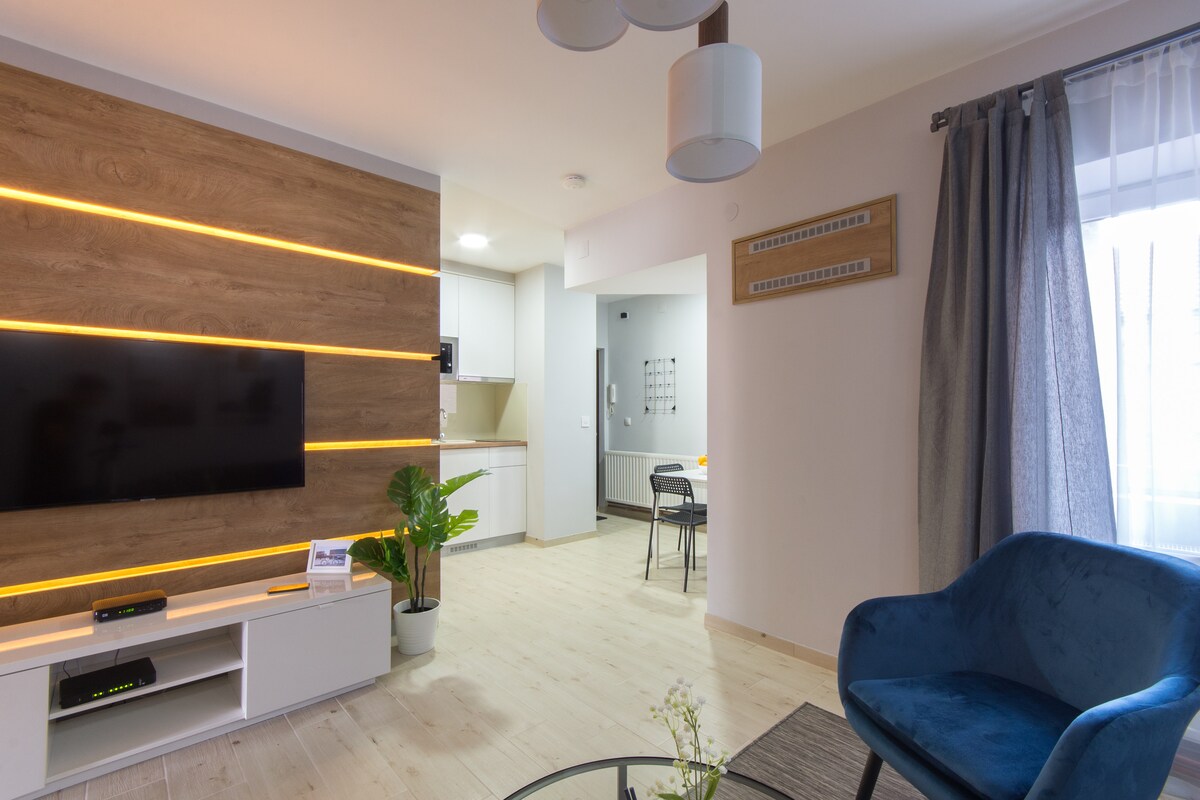 Njóttu dvalarinnar í stílhreinni og þægilegri íbúð í miðborg Belgrad. Í íbúðinni er háhraðanet upp að 300 Mb/s sem er fullkomið fyrir fjarvinnu, streymisþjónustu eða myndsímtöl. Vaknaðu með fallegt útsýni yfir borgina, umkringd heillandi kaffihúsum, vinsælum börum, veitingastöðum, söfnum og menningarlegum kennileitum — allt í göngufæri. Tilvalið fyrir pör, einstaklinga, stafræna hirðingja eða alla sem vilja upplifa sanna stemningu borgarinnar.