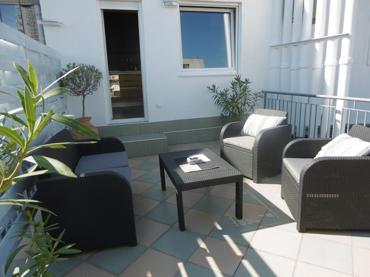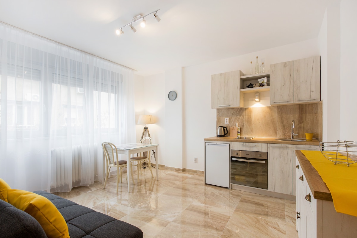 Rétt í miðborginni, í hinu fræga Bohemian hverfinu Skadarlija (Skadarska Street) finnur þú þessa líflegu uppgerðu saloon íbúð! Aðeins 3 mínútur frá Lýðveldistorginu, Þjóðleikhúsinu og Þjóðminjasafninu. Fullkomið fyrir tvo einstaklinga. Mjög rúmgott, nútímalegt og vel búið; 45m2 íbúð + 8m2 verönd. Og „plús“ er sú staðreynd að gestgjafinn þinn er heimsferðamaður og ferðasérfræðingur sem mun reyna eftir fremsta megni að tryggja að þú hafir allt sem þú þarft og jafnvel meira!