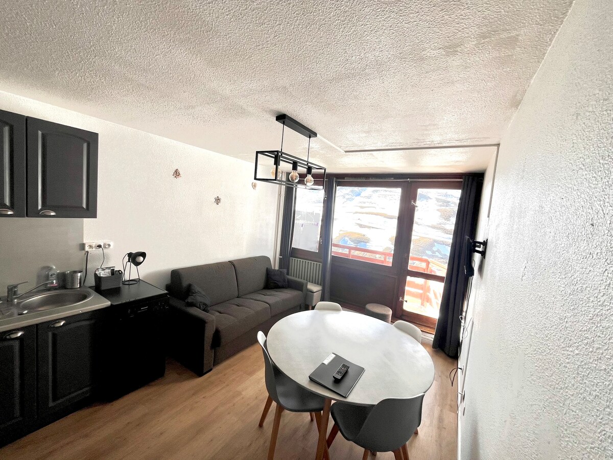 Studio 4 pers balcon sud sur pistes+parking wi-fi