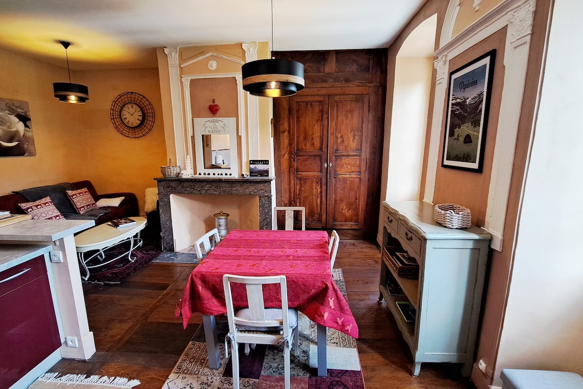 HYPER CENTRE , beaucoup de charme, refait à neuf, très confortable, vues dégagées sur les montagnes. Toutes les commodités du centre ville, commerces,... km 0 : départ du Tourmalet. Garage à vélos et moto, ski. Coeur de la plus belle vallée des Pyrénées, paradis des cyclistes, randonneurs, skieurs. -1 chambre lit en 160 (ou 2 lits individuels), micro-onde, frigo, bouilloire, machine nespresso, vaisselle, produits d'accueil, TV, WIFI,. + salle d'eau