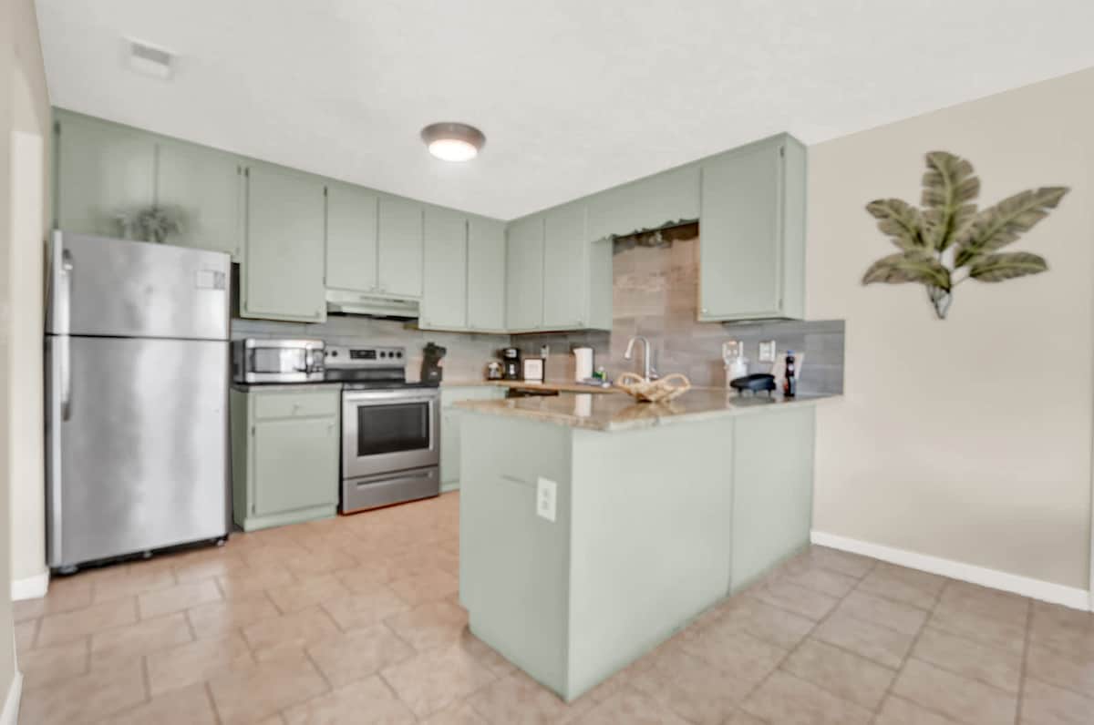 Komdu og farðu með alla fjölskylduna á tímabundið heimili þitt að heiman. Þetta fallega heimili er staðsett í fjölskylduvænu hverfi í um 8 km fjarlægð frá ströndinni. Kapalsjónvarp og þráðlaust net innifalið. Ýmsir veitingastaðir, matvöruverslanir og verslunarmiðstöðvar eru þægilega staðsettar í nágrenninu.