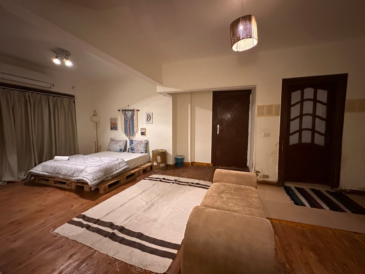 Unique studio a different experience its the only ground floor studio in neighbourhood with a private small garden with big bench so you can enjoy ur outdoor, perfect for travelers you can enjoy peaceful quite stay , perfect also for any one who want to work for a day office in a quite place beside the nile 5 min walk , 5 min to get out of maadi , you have your own parking area high speed internet clean stylish bathroom to enjoy ur shower 1 min walk to metro market ,cinema launderette , barber