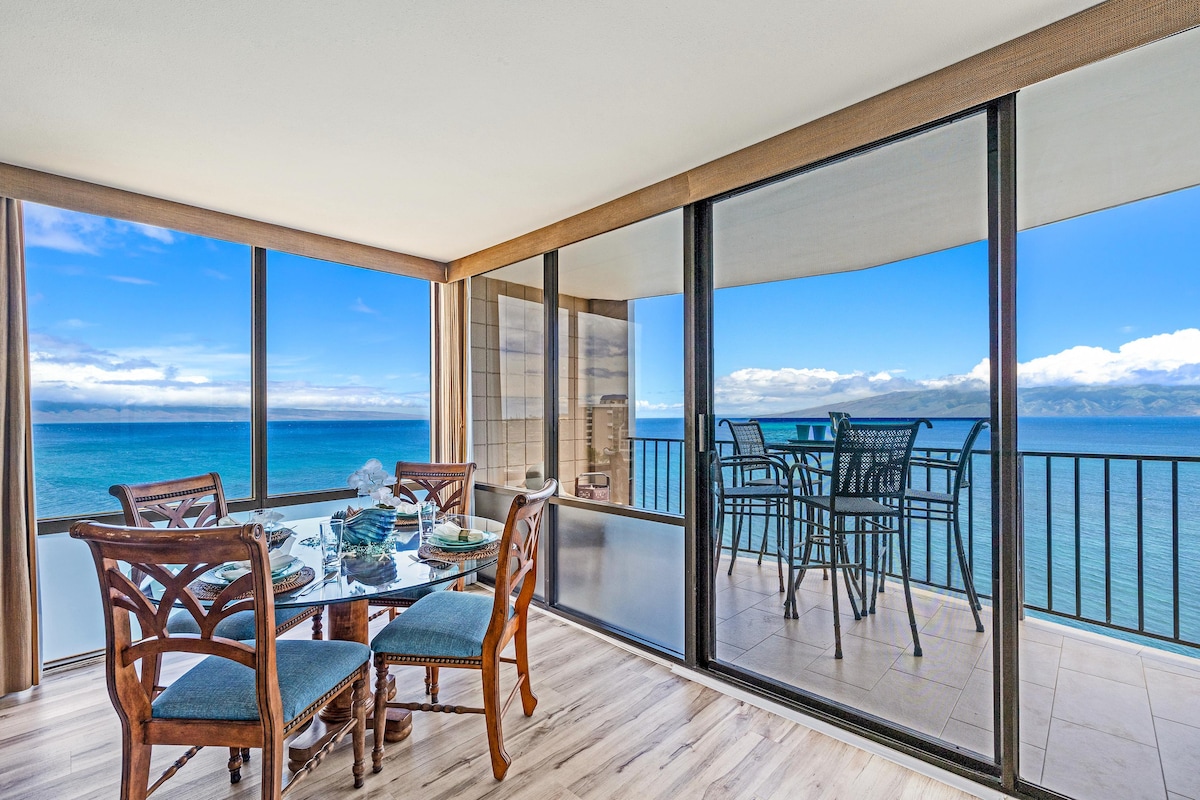 🌅Walk from our condo straight to the beach! 🏖️ Great location- stay close to Maui's most popular attractions! Stores & restaurants < 1 mile away! Our top-floor, bamboo-themed condo is renovated and OCEANFRONT! Watch the sunset from our balcony! We have AC in every room, laundry, and a large kitchen. Elevator accessible! Walking distance to PICKLE BALL courts! Award-winning grounds, plus a POOL and HOT TUB! Parking for 2+ cars. ❤️ We provide more than the average host- ask us about it!