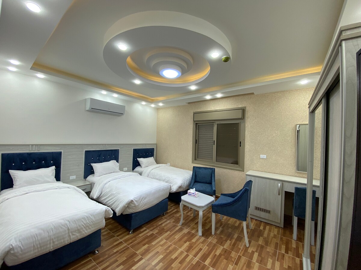 The apartment sets on a cliff gives it a beautiful scenery of Petra mountains. It is serviced by well trained hotel staff. Sets beside a 3 stars hotel which gives the guests the opportunity to use the services of the hotel too including pool, Turkish bath, Jacuzzi and restaurant (charges applied). It has access to all transportation available in the town. The windows open on a garden, channeled stream in the valley and panoramic cliffs of Wadi Musa. The kitchen fully equipped.