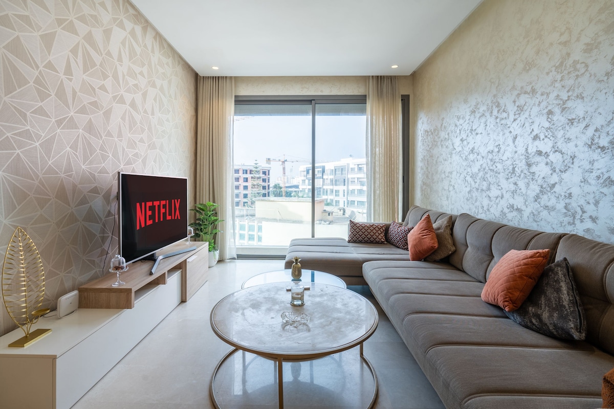 Láttu mjúka andrúmsloftið í þessari íbúð fara yfir þig, hugsaðu út með jafn mikilli athygli og ef við þyrftum að búa þar. Hvert smáatriði hefur verið vandlega valið til að skapa þægilegan, hagnýtan og notalegan stað þar sem þér líður vel fyrstu mínúturnar. Staðsett í miðju Casablanca, í Oasis-hverfinu. Hvort sem þú ert á staðnum til skamms eða langs tíma skaltu njóta ofurhraðs þráðlauss nets með ljósleiðara, fjarvinnuborðs og svala.