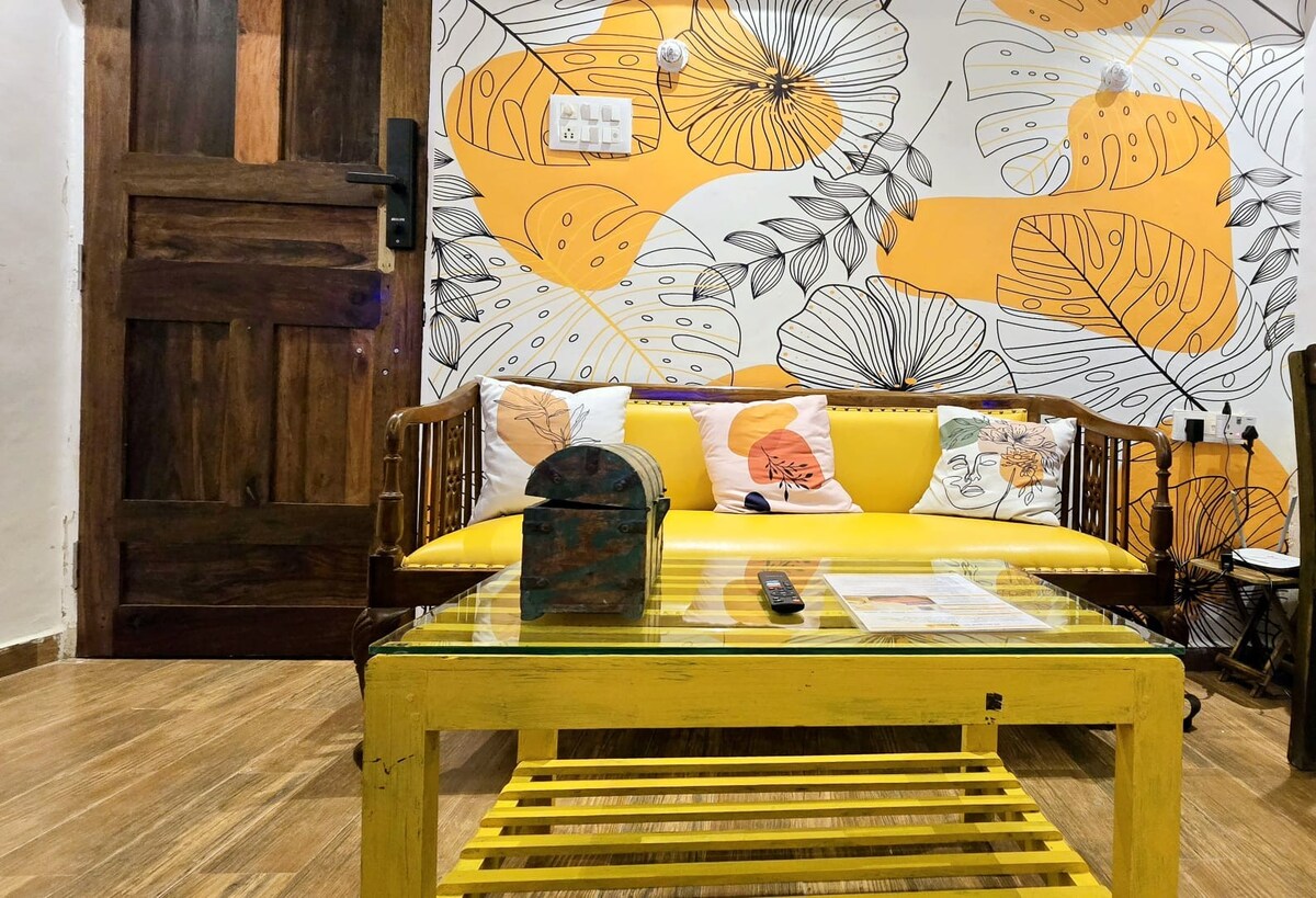Kynnstu heimi friðar og innblásturs í The Pause Project, notalegri og rómantískri eign á Airbnb sem er staðsett í miðjum gróskumiklum skógi í Siolim, Norður-Goa. Fullkomið fyrir einstaklinga, pör og fjölskyldur. Hér er hægt að slaka á. Sökktu þér í bækur, tónlist, ferðaminningar og heimilislegt andrúmsloft. Eldaðu máltíð í eldhúskróknum eða skoðaðu Siolim, þekkt fyrir kaffihús og bar, með Anjuna, Vagator, Assagao og Morjim, Mandrem ströndum í 15-20 mín. fjarlægð og 35 mín. frá MOPA flugvelli.
