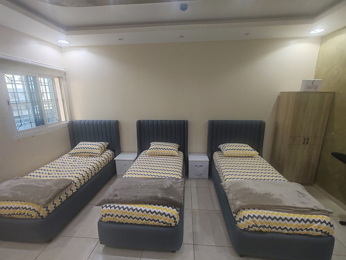 Fjölskyldan þín verður nálægt öllu þegar þú gistir í þessu stefnumarkandi húsnæði. - Nálægt mosku spámannsins 10 mínútur 🚗 - Quba Mosque 9 mínútur 🚗 - Flugvöllur ✈️ 23 mínútur - Það eru matarbirgðir, þvottahús og apótek í 2 mínútna göngufjarlægð í fótunum - Barnes og kaffikastalinn eru í ☕️ tveggja mínútna göngufjarlægð frá fótunum - Al-Drees Station 1 mínúta 🚗