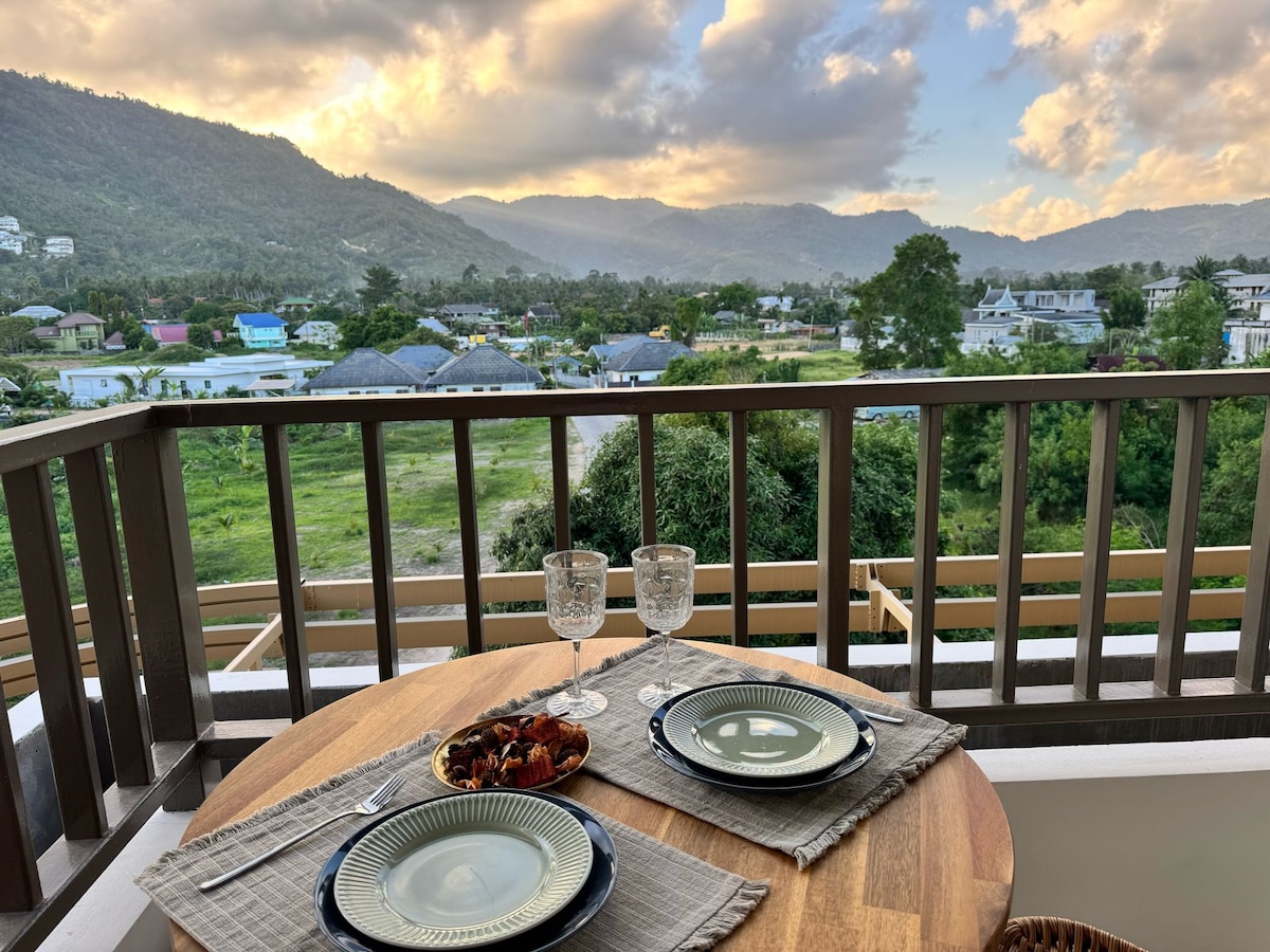 Same great shared sala and pool at Maenam Hills Samui Villas. 2 new beautiful view, 1 bedroom apartments with , Kitchenette, king size sofa beds in the living room and king size beds in the bedroom. Stórt snjallsjónvarp og rúmgóðar sturtur ! Samanbrjótanlegar innkeyrsludyr úr gleri gefa þér tilfinningu fyrir því að vera úti frá veröndinni eða svölunum en tvær loftræstingar í hverri einingu halda þér köldum á heitum sólríkum dögum. Hratt, sérstakt net fyrir hverja einingu og einkabílastæði fyrir þig fullkomnar tilboðið !