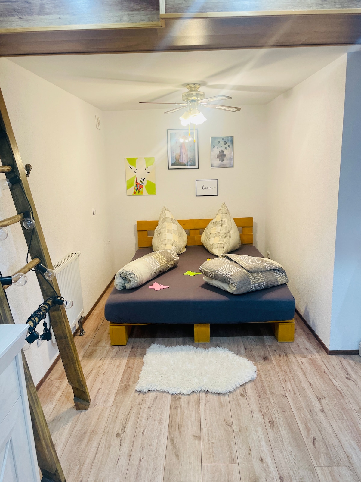 Láttu þér líða eins og heima hjá þér í fallegu, fallegu, uppgerðu íbúðinni okkar. Miðsvæðis í Lahr/Black Forest (nálægt hjartamiðstöðinni) og samt í miðri náttúrunni við rætur Svartaskógar og beint á Hohbergsee. Tilvalinn upphafspunktur fyrir gönguferðir, ferðir til Alsace, Europa Park og Svartaskógar. Fjarlægðir: Lahrer-Innenstadt: u.þ.b. 2 km (15min ganga) Hjarta miðstöð: 200m Europa-Park: u.þ.b. 22 km (25 mínútur) Strassborg: u.þ.b. 48 km Freiburg: u.þ.b. 55 km