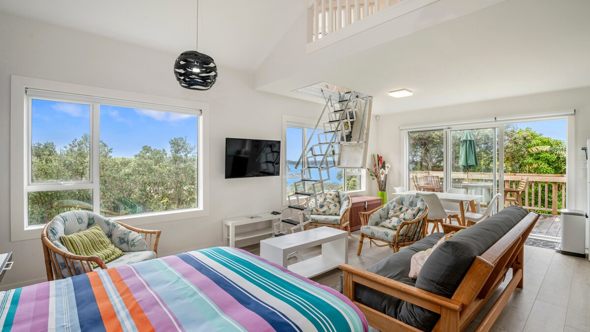 Unique studio unit. Separate to main dwelling with own access and self contained. A lovely light and airy space originally designed as an artists studio. Space includes queen bed, two comfortable chairs, small fridge with tea and coffee bench, and shower and toilet. Access to laundry facilities in main house if required. 1 minute walk to beach, 1 min. drive or 10 minute walk to large selection of restaurants in Orewa. Five minutes from motorway, 30 minutes from Harbour bridge.