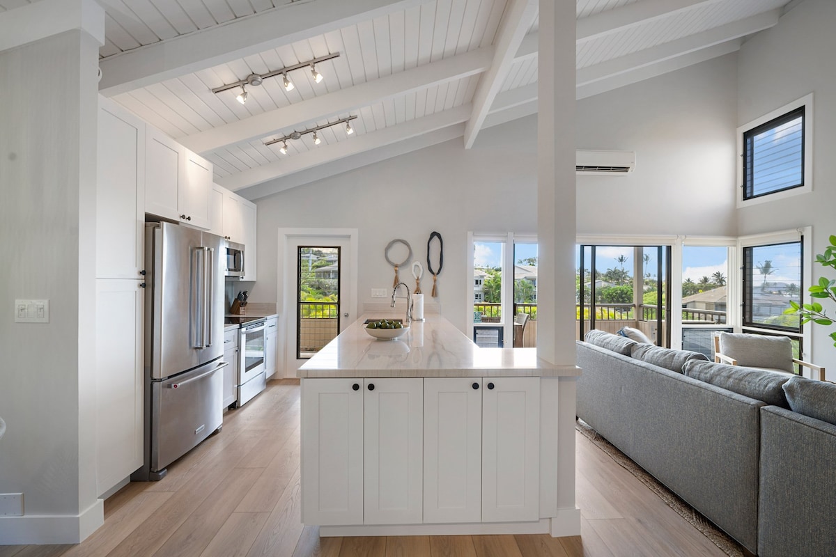 Þetta er sjaldgæft raðhús í Wailea Ekolu Village. Það er næstum 1500 fermetrar og var alveg endurnýjað frá toppi til botns. Þó að það sé margt sem gerir þetta einstakt frá útsýni til endurbóta er ótrúlegt skipulag raðhúsa sjaldgæft fyrir alla gesti á svæðinu Wailea. Skref frá mat, verslunum og nokkrum heimsklassa ströndum. Fáðu þér drykk meðan þú nýtur magnaðs útsýnis og þegar sólin sest.