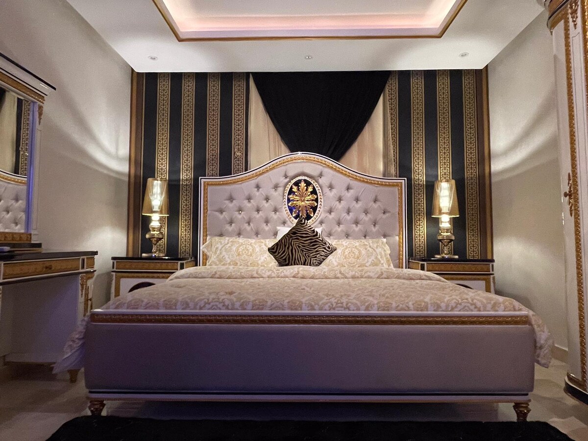 Versace is a luxurious suite with hotel specifications designed to be one of the best suites in the city of Jeddah. The suite not only aims to provide a comfortable experience, but also aims to provide an exceptional experience by all standards. The suite was designed to suit the newlyweds and small families who looking for exceptional accommodation due to the perfect location and luxurious services provided by the suite such as TV cinema, jacuzzi, public swimming pool, sauna, and game room.
