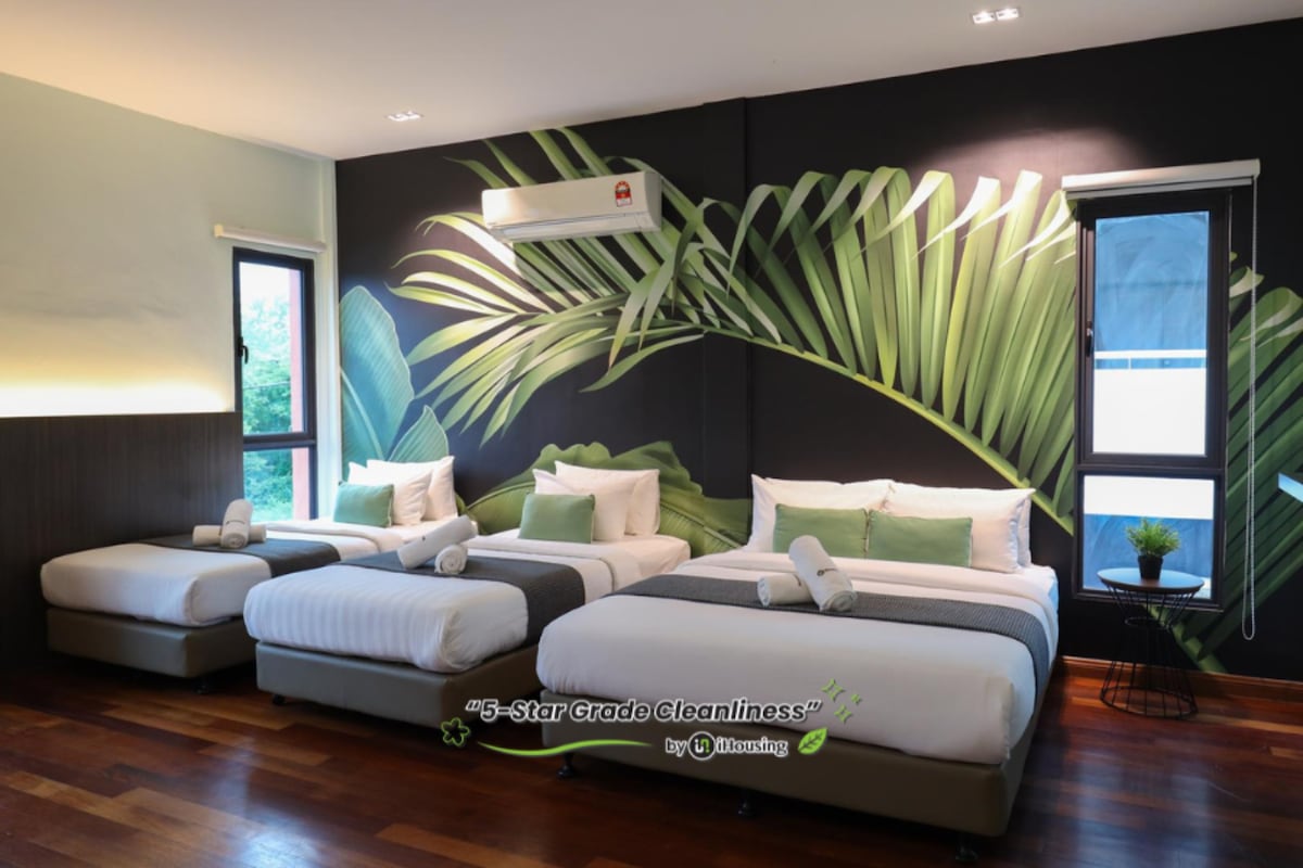 Þetta er Swam Garden Resort Hotel með göngufæri: bar, veitingastaður, nudd, kaffihús og margt fleira og aðeins 4 mínútur frá Jonker Street Melaka. Hönnunin okkar er einstök og stílhrein. Hótelið rúmar 5 manns og er í umsjón fyrirtækisins okkar. Auðveld innritun með lykilorði í WA án þess að þurfi að standa í röð við móttökuborðið á hótelinu. Við getum séð til þess að þið getið innritað ykkur fyrr án endurgjalds ef enginn leigjandi var á staðnum daginn áður. Endilega notið allar aðstöðuna. Hægt er að útvega morgunverð og daglega þrif gegn gjaldi ef þörf krefur. Er NÝTT og fágað!