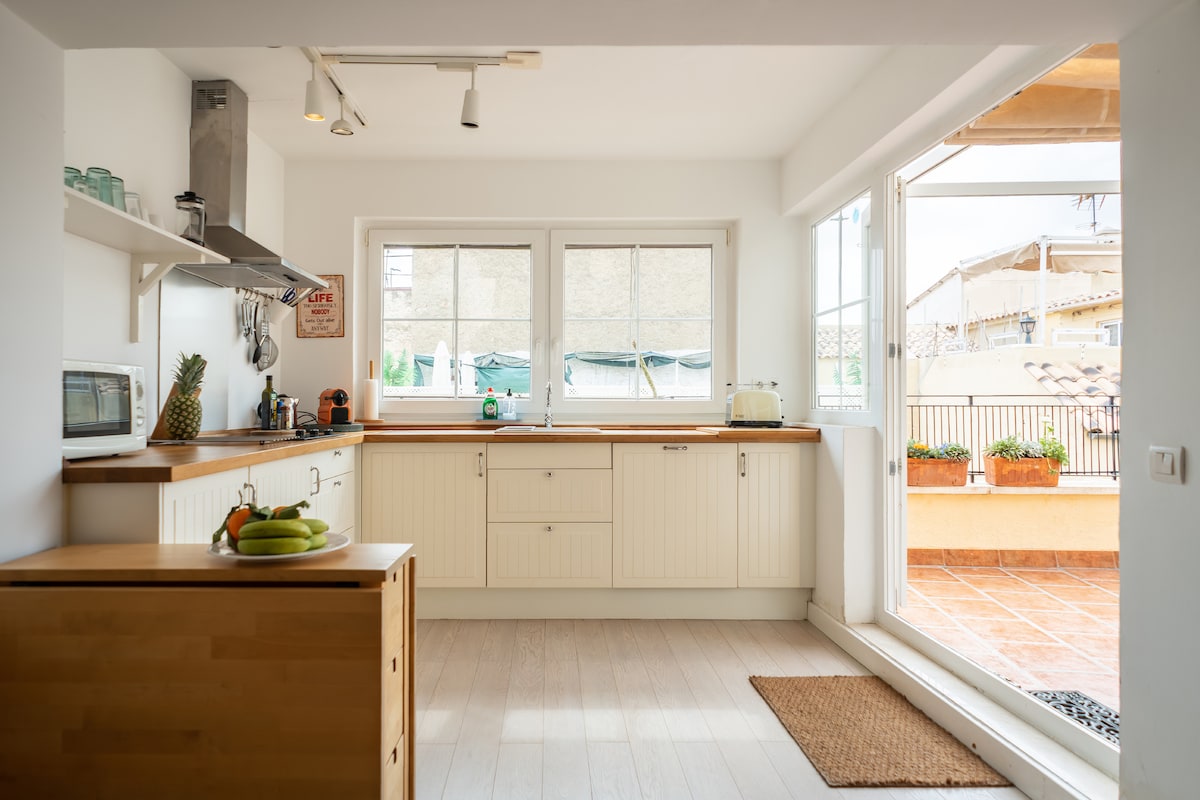 Íbúðin mín er á frábærum stað í sögulegum miðbæ Malaga og í 2 skrefa fjarlægð frá verslunarsvæði, strönd og söfnum. Þér mun líða eins og heima hjá þér frá fyrstu stundu. Þetta er mjög létt íbúð og stór bónus er einkaveröndin 15m2 og snýr í suður svo að jafnvel á vetrardögum er hægt að njóta sólarinnar. Þetta er fullkominn staður þar sem þú getur slakað á og fengið þér að borða. Lestu bara umsagnirnar og þú munt skilja hvað ég á við... Við hlökkum nú þegar til að taka á móti þér !