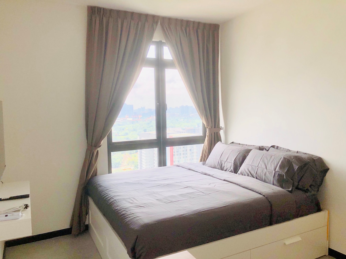 This 1 Br apartment comes with a breathtaking view of KL skyline. It has a 3-seaters sofa living room, dining table, kitchen, desk and a big balcony facing the KL Tower & Petronas Twin Towers. It comes with a 55” TV, Hi-Speed WIFI and a Queen size bed that can fit you comfortably. *The other unit of this Dual Key apartment is a compact Studio with Queen size bed, pantry, washroom & bath. It can fit in friends who travel with you with privacy. Welcome to ask for more details!