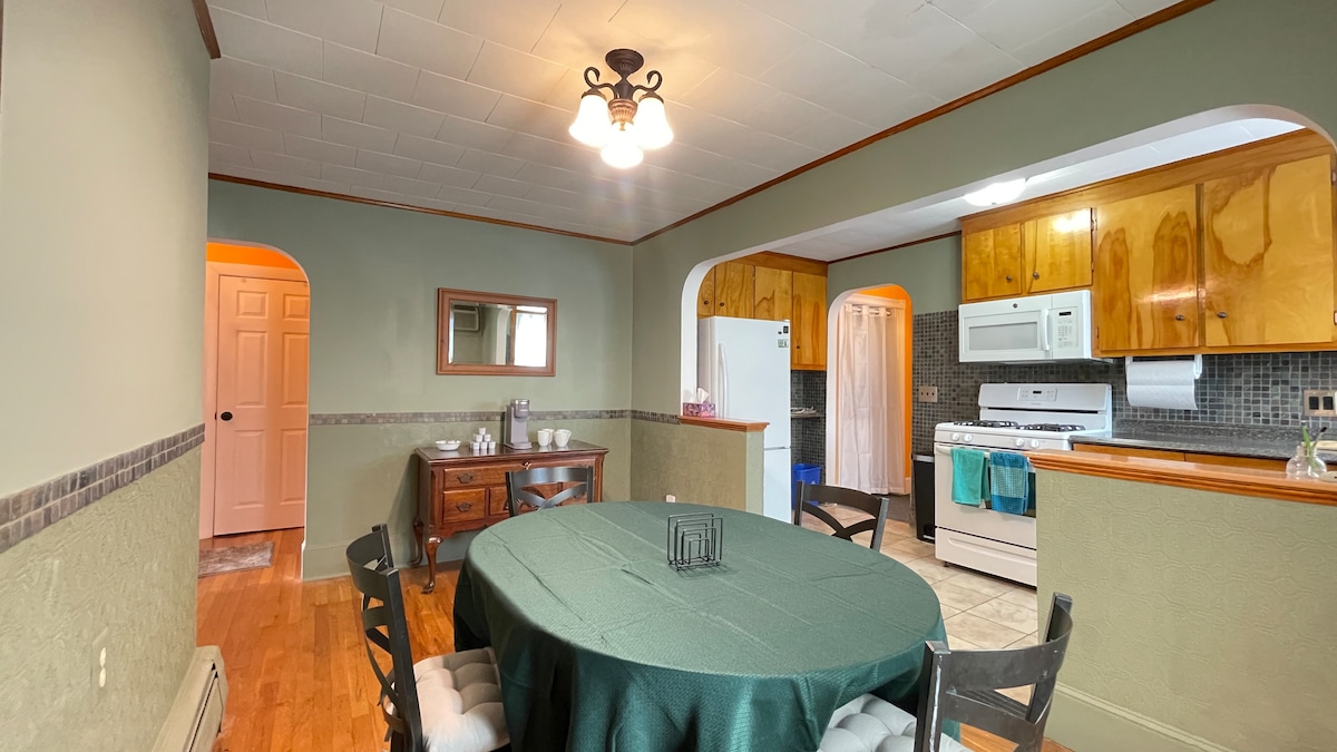 Ertu að leita að dæmigerðri gistingu í Salem? Ekki leita lengra! Aðalsvefnherbergið er hannað til að koma þér í Salem-andann með dökkum gotneskum innréttingum. Taktu þér lestrarhlé í aðliggjandi herbergi sem lítur út eins og breskt bókasafn frá Viktoríutímanum. Rúmgóð stofa, borðstofa, eldhús og fullbúið baðherbergi fullkomna þessa fallegu eign. Njóttu þess að leggja í innkeyrslu í borginni sem er almennt pökkuð. Við erum í stuttri og skemmtilegri 12 mínútna göngufjarlægð frá götu Essex og öllu því sem miðbærinn hefur upp á að bjóða!