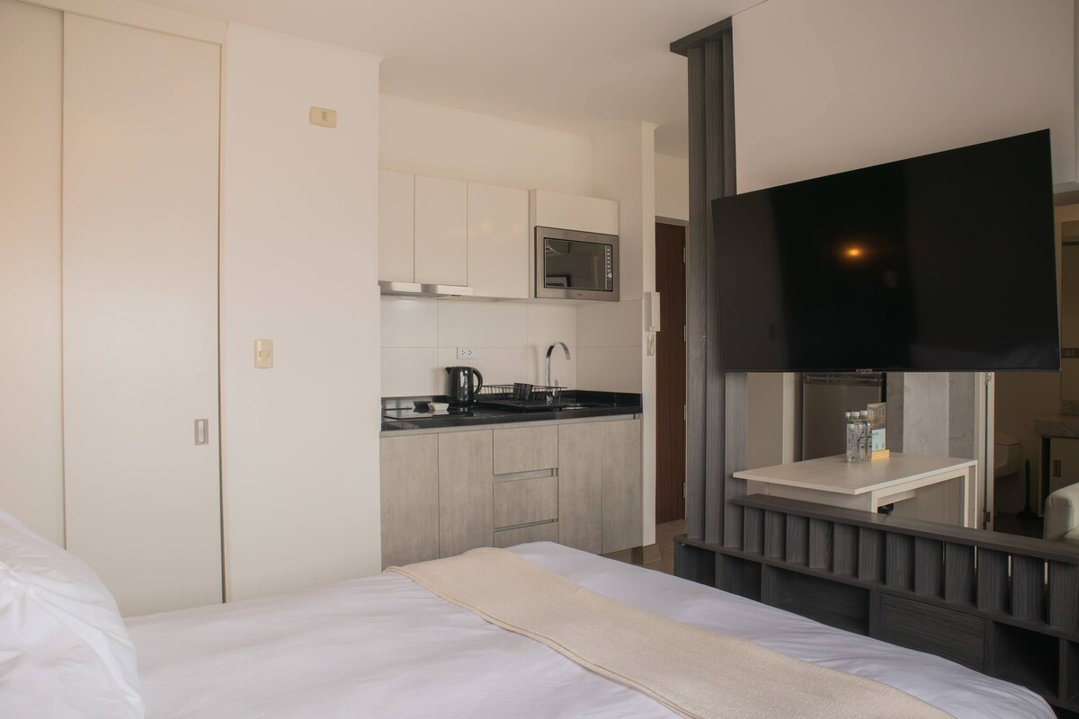 Njóttu dvalarinnar á besta og líflegasta svæðinu í Miraflores, beint á móti Kennedy-garði. Þið munið vera umkringd veitingastöðum, kaffihúsum, matvöruverslunum og bönkum, allt í göngufæri. Tilvalið fyrir bæði frístundafólk og viðskiptaferðamenn sem vilja njóta þæginda, góðrar tengingar og bestu staðsetningarinnar í borginni. Í boði er fullbúið eldhús, þægilegt queen-rúm, sérstakur vinnuaðstaða, snjallsjónvarp og háhraðaþráðlaust net. Fullkomið til að slaka á eða vinna í algjörum þægindum.