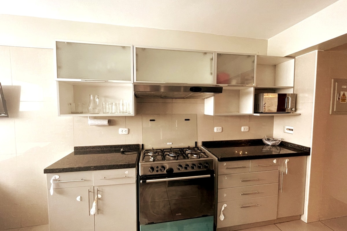 Luxury full apartment on a quiet street in the heart of Miraflores. Safe, secure, and perfectly located just steps from Kennedy Park, the Malecón (seafront cliffs), Wong Balta supermarket, and near Hilton Garden Inn. Surrounded by top restaurants, 5-star hotels, and main attractions. Enjoy ultra-fast 800 Mbps internet, 24/7 front desk, and a 100% private apartment with a fully equipped kitchen, laundry, and everything you need for a perfect stay—ideal for both tourists and business travelers.