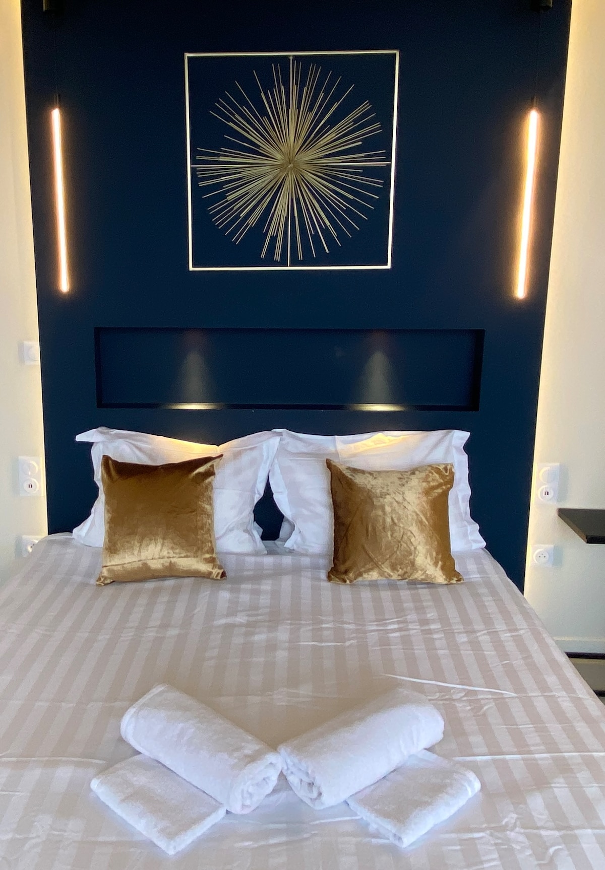 Gistiaðstaðan okkar er með útsýni yfir sjóinn í Malo les Bains og útsýnið er óviðjafnanlegt. Það er gott fyrir pör, viðskiptaferðamenn, fjölskyldur (með 2 börn) fjölskyldur (með 2 börn). Íbúð á annarri hæð án lyftu Öll þægindi (80 cm snjallsjónvarp,þráðlaust net, ofn, örbylgjuofn, sófi í stofu sem hægt er að breyta í rúm fyrir 2 manns (140 x 190), ókeypis barnarúm sé þess óskað, dunlopillo rúmföt og stór skápur í herberginu...)