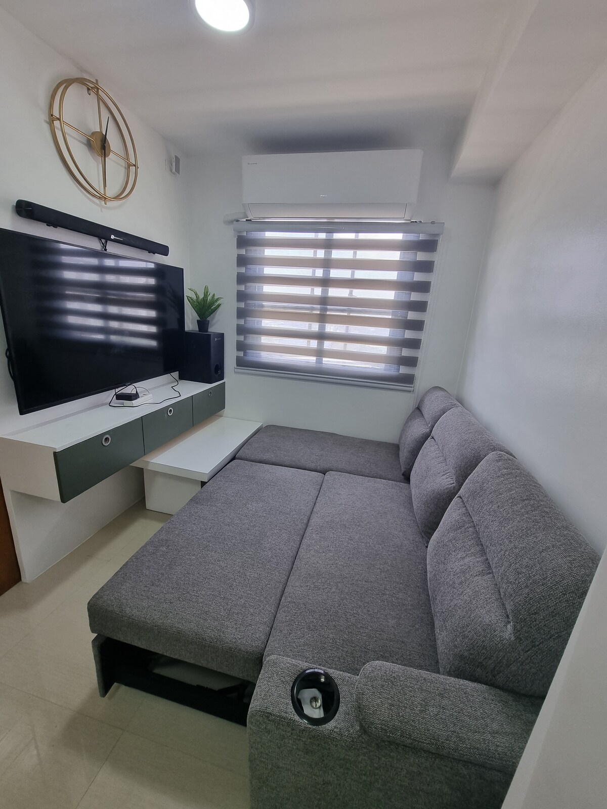 Upplifðu fullkomna blöndu af heimilislegum þægindum og lúxus eins og á hóteli þar sem afslöppun þín, ánægja og þægindi eru í forgangi hjá okkur. Við vorum upphaflega hönnuð sem tveggja svefnherbergja íbúð og höfum breytt þessari einingu í eins svefnherbergis svítu með svölum og býður upp á rúmgóða stofu og borðstofu. Þessi fullbúna íbúð í Quezon-borg er með heimilistækjum, afþreyingarvalkostum og leikjatölvum og er tilvalin fyrir næstu gistingu.
