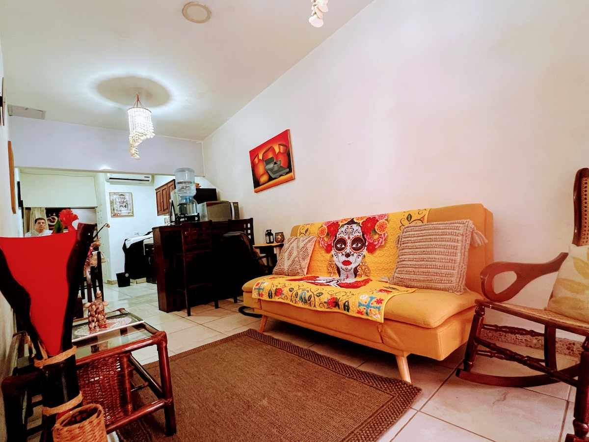Verið velkomin í íbúðina okkar í Colonia Centroamérica, líflegu hverfi með greiðan aðgang að almenningssamgöngum, verslunum á staðnum, ferskvörumörkuðum og fjölbreyttum veitingastöðum; allt í göngufæri. Við höfum útbúið þetta rými til að bjóða þér þægilega og notalega dvöl á miðlægu svæði í Managua, í aðeins nokkurra mínútna akstursfjarlægð frá helstu verslunar- og afþreyingarmiðstöðvum borgarinnar.