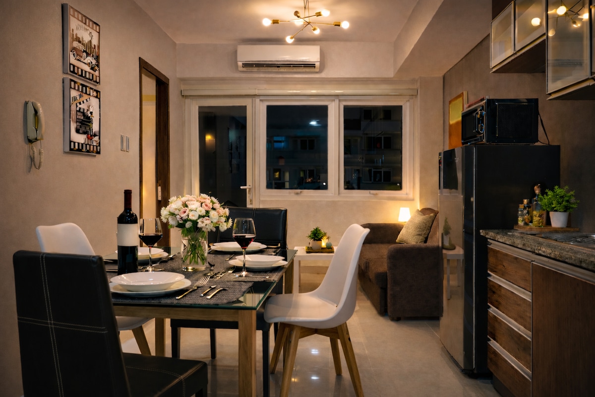 Experience style and convenience in this modern BGC studio! Just a 2-minute walk to Venice Canal Mall, it’s perfect for work and leisure. Enjoy a hidden pullout queen bed, an expanding table for dining or work, and an 84” projector for a cinematic experience. Steps from cafes, groceries, and restaurants, everything you need is within reach. Whether you're unwinding, exploring, or working remotely, this cozy retreat is the ideal staycation spot! 🎬🎮✨