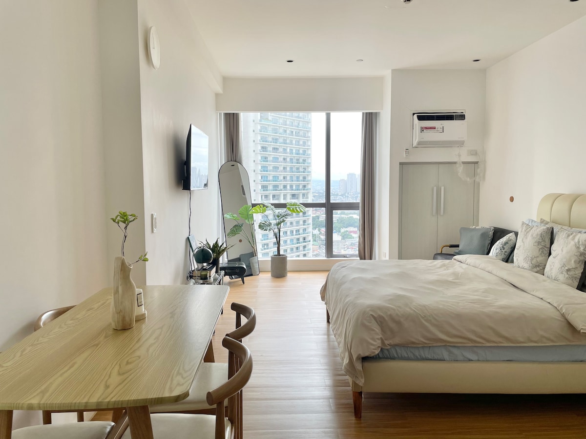 Stay in our Instragrammabble chic 28 sqm condo on the 39th floor, offering breathtaking city views . This stylish space features modern décor, a comfortable bed, a fully equipped kitchen, and a 60" smart TV with Netflix and YouTube premium. Enjoy the vibrant ambiance and capture beautiful moments from the high vantage point. Ideal for both short and long stays. Book now for an unforgettable experience!