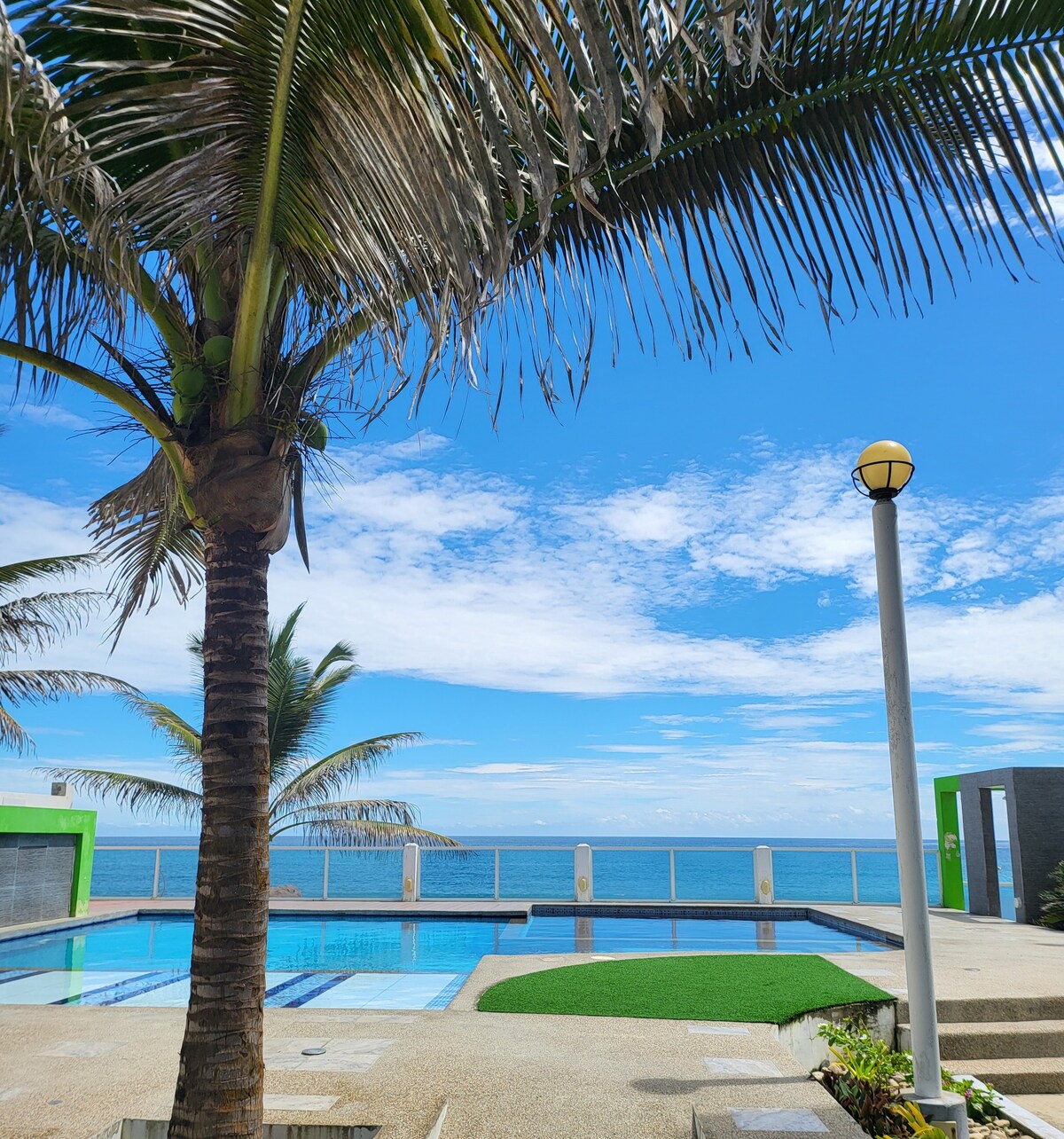 Lifðu dvalarupplifun við sjóinn í þessari nútímalegu og öruggu svítu. Njóttu víðáttumikillar laugar, nuddpots og hvíldarsvæða, tilvalin til að slaka á og slökkva á öllu. Svítan býður upp á þægindi, næði og fallegt sjávarútsýni innan öruggs, einkasvæðis með eftirliti allan sólarhringinn. Rými hannað fyrir þá sem leita að hvíld, þægindum og úrvalsaðstöðu, fullkomið fyrir frí, ferðamennsku eða vinnuferðir í Manta.