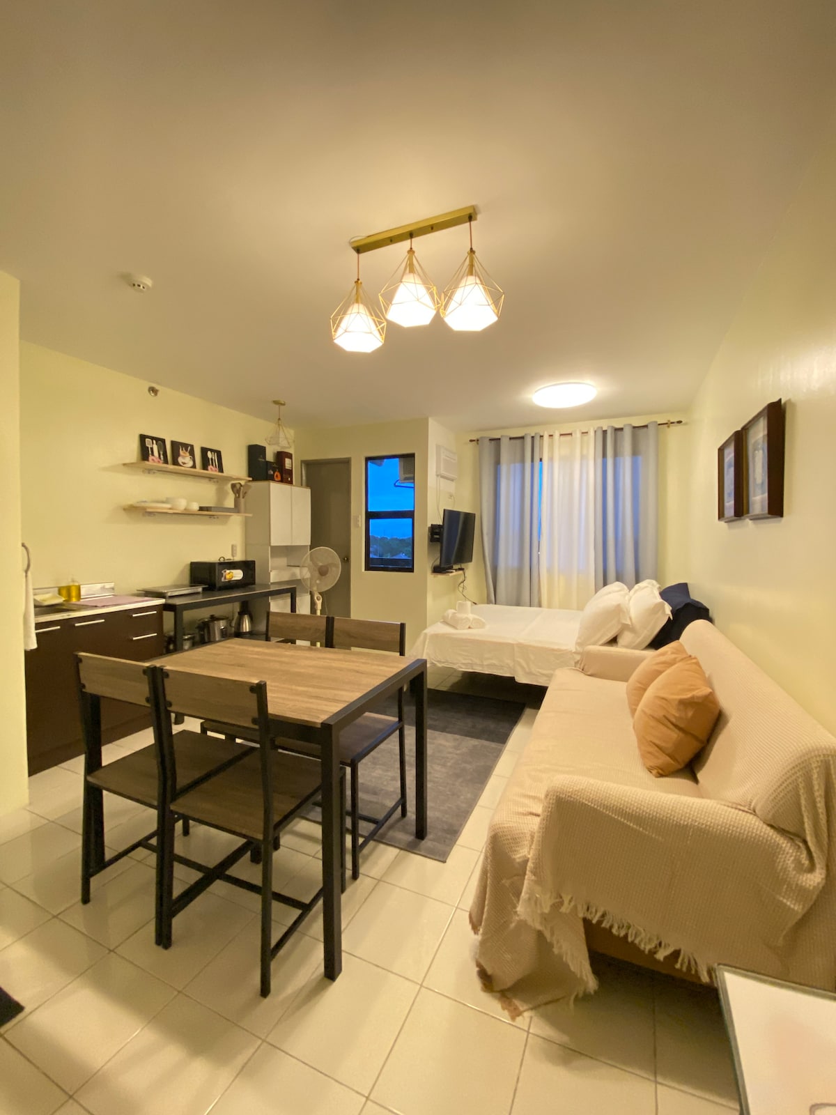 Verið velkomin í Holland Park Condominium! 24,5 m2 stúdíóið okkar er fullkomið fyrir 2 til 3 gesti (eða 2 fullorðna + 1 barn). Þú hefur skjótan aðgang að verslunum, veitingastöðum og skemmtunum hinum megin við Southwoods-verslunarmiðstöðina. Splash Island er í nokkurra mínútna fjarlægð og auðvelt er að komast á helstu áfangastaði eins og Enchanted Kingdom, Nuvali og Alabang. Hvort sem það er fyrir stutta dvöl eða langt frí tryggir notalega og vel búna eignin okkar þægilega og afslappandi upplifun