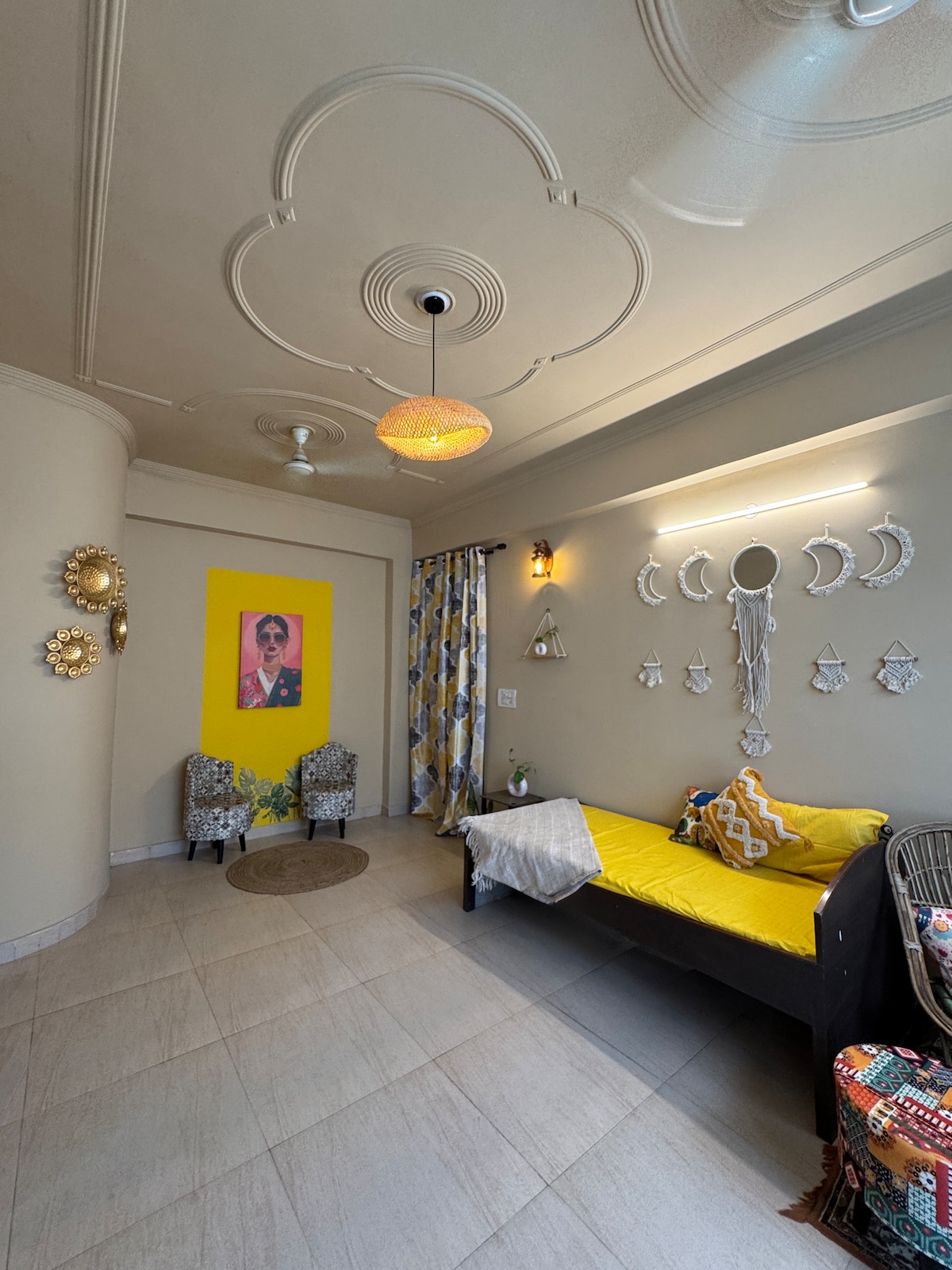Velkomin/nn til Gharonda, rúmgóða en notalega afdrepinu þínu í bóhemstíl í hjarta Tapovan. Þessi fallega hönnuðu Airbnb eign býður upp á hlýlegt og listrænt andrúmsloft með stórkostlegu fjallaútsýni og friðsælum svölum sem eru fullkomin fyrir róleg morgna. Staðsett nálægt leyndum fossi, einnig aðeins 3–4 km frá Lakshman og Ram Jhula. Fágað umhverfi Tapovan og helsti flúðasiglingastaðurinn gerir staðinn að tilvöldum upphafspunkti fyrir skoðunarferðir. Með fossum í nágrenninu lofar það þægindum, sjarma og sannri Rishikesh upplifun.