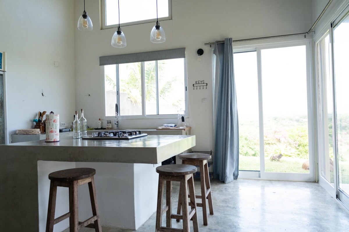 KOMDU OG SLAPPAÐU AF STEINSNAR FRÁ STRÖNDINNI. Við stefnum að því að veita gestum okkar hugarró í þessu örugga umhverfi með eyjablæ. Starfsfólk okkar er hér til að aðstoða þig ef þú þarft á því að halda. Gakktu í 5 mínútur og þú finnur frábæra veitingastaði. Á kvöldin skaltu sofna undir lúxus moskítónetum okkar og mjúkum aðdáendum. Húsið er rúmgott og opið og hannað með umhverfið í huga. Opnaðu stóru rennihurðarnar og njóttu sjávarútsýnisins. Aðeins 30 kílómetra frá Maputo.
