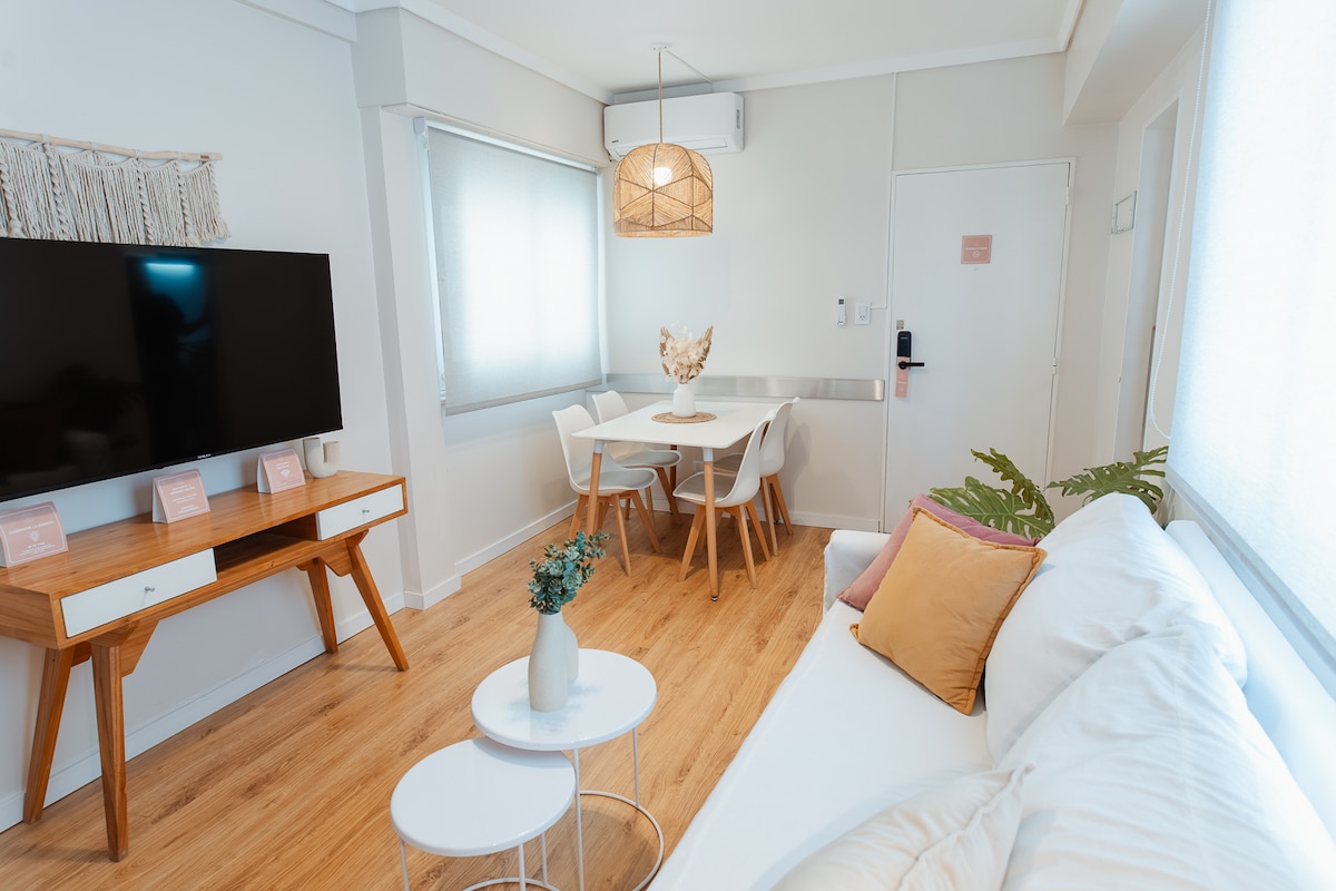 Descubre este amplio departamento de 3 ambientes con dependencia de servicio. Con una decoración clásica en impecable estado, te brinda un ambiente acogedor y elegante. El luminoso living comedor cuenta con un juego de sillones y una TV con Flow HD para tu entretenimiento. El dormitorio principal está equipado con una cómoda cama matrimonial y una TV, mientras que el segundo dormitorio cuenta con dos camas sommier individuales y un sillón cama adicional de una plaza, además de otra TV.