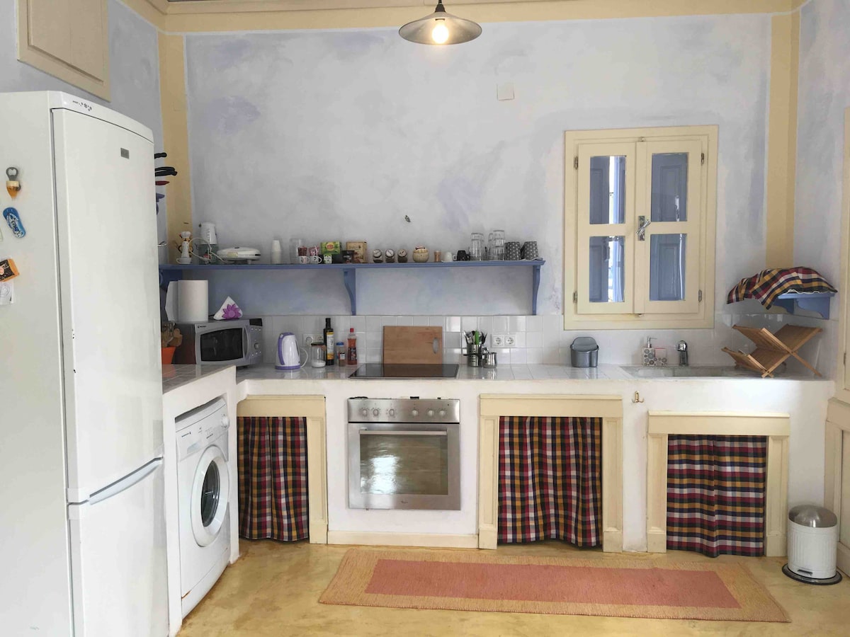 Recently and lovingly renovated two bedroom family home, completed in summer 2023. Beautiful and characterful with incredible views across the unique island of Symi - sea, sky, mountain and village. Perfect for solo, couple and family escapes, with a great location in the Chorio village, in a secluded spot but only a 3 minute walk to the main village square with a shop, bakery, cafe, restaurants and bars. The house is both peaceful and stylish.