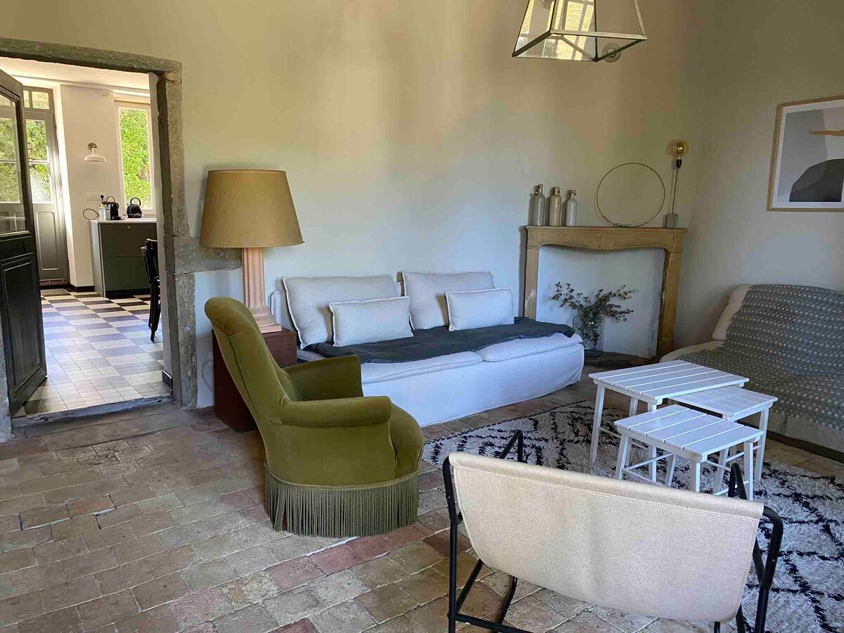 Heillandi bústaður með fulluppgerðum garði við hlið Lyon (25 mín.) og í hjarta Beaujolais. Bústaðurinn er með yfirgripsmikið útsýni yfir Val de Saône, nálægt gylltu steinunum, með 6 rúmum, þar á meðal tveimur á millihæðinni, heilsulind, nýjum þægindum og vel búnu eldhúsi. Gamall brauðofn, hann er hljóðlega staðsettur á lóð kastala. Það býður upp á sjarma hins gamla með nútímaþægindum. Hún fær 4 stjörnur í flokki eigna fyrir ferðamenn með húsgögnum.