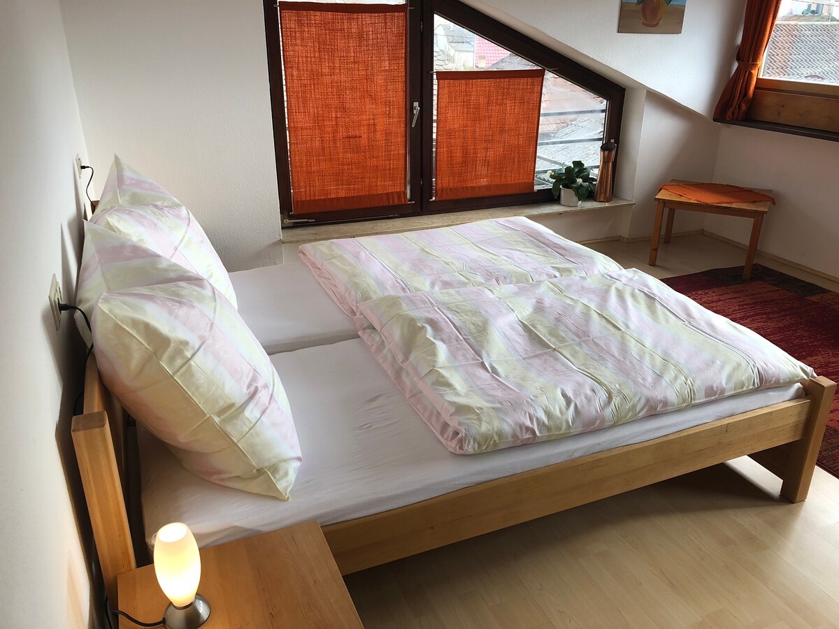 Myndræna vínþorpið Achkarren er fullkominn upphafsstaður fyrir gönguferðir í Kaiserstuhl. Gistináttin þín er í hjarta þorpsins á víngarði sem er virkur til 2016. Íbúðin er staðsett á annarri hæðinni í húsnæði gestgjafanna Jóhönnu og Hansjörg Engist og er búin eigin eldhúsi og baðherbergi. Innganginn í íbúðina er hægt að ná í gegnum gang leigusala.