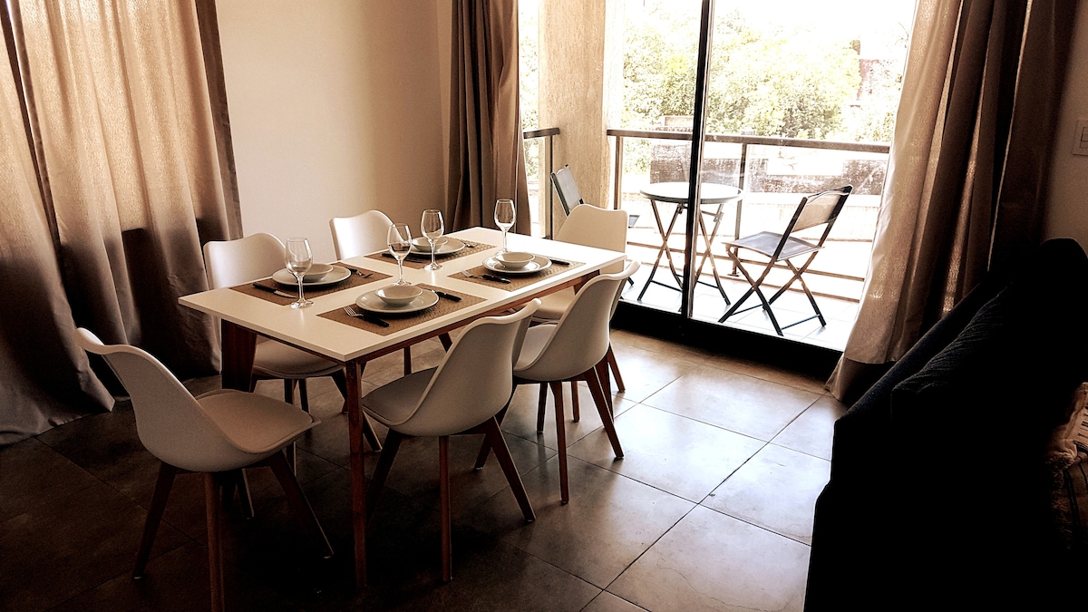 Disfrutá de este amplio y luminoso departamento en pleno centro de Iguazú. Cuenta con 2 dormitorios, 2 baños completos, balcones y parrilla, ideal para relajarte después de un día de paseo. La cocina está completamente equipada para que puedas cocinar con comodidad, y desde los balcones se aprecian vistas verdes que invitan al descanso. Su ubicación es inmejorable: estás cerca de todo, con la tranquilidad para disfrutar como en casa. Además de jacuzzi, wifi rápido y espacio de trabajo.