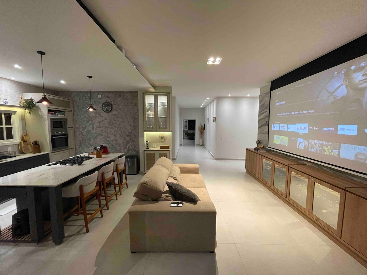 ✨ Araguaya Cozy 🏡 Tilvalið hús fyrir allt að 13 manna hópa, með 3 en-svítum með svölum og heitu og köldu loftkælingu. 🍽️ Samþætt stofa með eldhúsi og borðstofu, einnig með heitu og köldu lofti. 📶 Þráðlaust net í boði í öllu húsinu. 🔥 Fullbúið sælkerasvæði með baðherbergi, grill, pizzuofni, helluborði og vaski. 💦 Innandyra nuddpottur með vatnsnuddi og heitu vatni. 🚿 Gasupphitun með heitu vatni í öllu húsinu. 🧺 Þvottavél og þurrkari. 🚫 Við bjóðum ekki upp á rúmföt og handklæði.