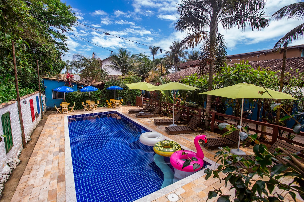 Pousada Villa Blu er staðsett í 700 metra fjarlægð frá heillandi strönd Maresias, á norðurströnd São Paulo, og er með byggingu umkringda náttúrunni. Við erum með sundlaug, bílastæði, þráðlaust net, Mirante, rúmföt, handklæði og morgunverðarþjónustu sem er vandlega undirbúin fyrir þig! Við erum með fjórar tegundir af gistingu á milli svíta og flata sem taka á móti pörum, vinum og fjölskyldum. Komdu og upplifðu þessa upplifun!