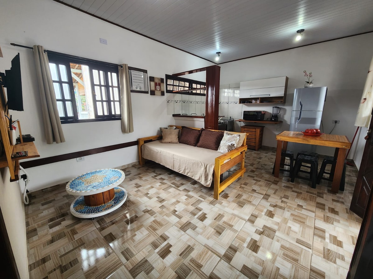 Sou um artista plástico ítalo-suíço e convido você a conhecer o meu lindo refúgio e fonte de inspiração. A casa fica no meio do mato, na beira do rio e a 5 minutos a pé (200m) do mar. A casa é charmosa, porém rústica; é para amantes da natureza com espírito esportivo. Lugar calmo e ideal para quem quer ler, escrever ou relaxar. Tem supermercados e restaurantes bem perto; deixe o carro e faça tudo a pé. Alugo por um mínimo de 2 dias e durante feriados, por um mínimo de 3 dias.