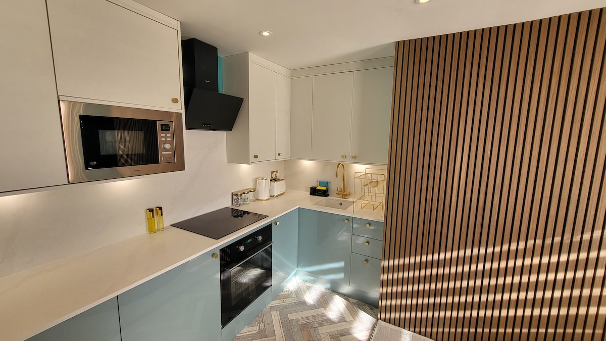 Verið velkomin í heillandi einbýlishús okkar í hjarta gamla bæjarins í Margate! Þessi nýuppgerða íbúð er með glæsilegu opnu eldhúsi og stofu með náttúrulegri birtu sem er fullkomin til að slaka á og slaka á eftir að hafa skoðað sig um. Svefnherbergið er með lúxus baðherbergi með regnsturtu en fallegir burgundy-litaðir veggir og lítill fataskápur gefa frá sér glæsileika.
