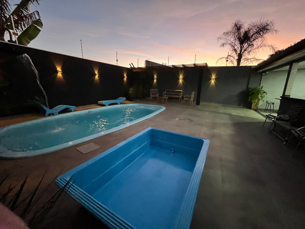 Hús staðsett í góðum garði, með upphitaðri sundlaug (sólarhitari, veltur á nokkurra daga sólskini til að halda á sér hita og því er hitastigið ekki tryggt). Hér er stórt eldhús með eyju og öllum nauðsynlegum áhöldum til að undirbúa þig fyrir frábæran kvöldverð, grillsvæði sem er innbyggt í umhverfið. 01 ytra baðherbergi (sundlaug) og 01 baðherbergi innandyra, við hliðina á svefnherbergi, með hjónarúmi, ásamt öðru svefnherbergi með hjónarúmi, 01 einbreitt rúm og 01 einbreiðri dýnu Sófi í stofunni.