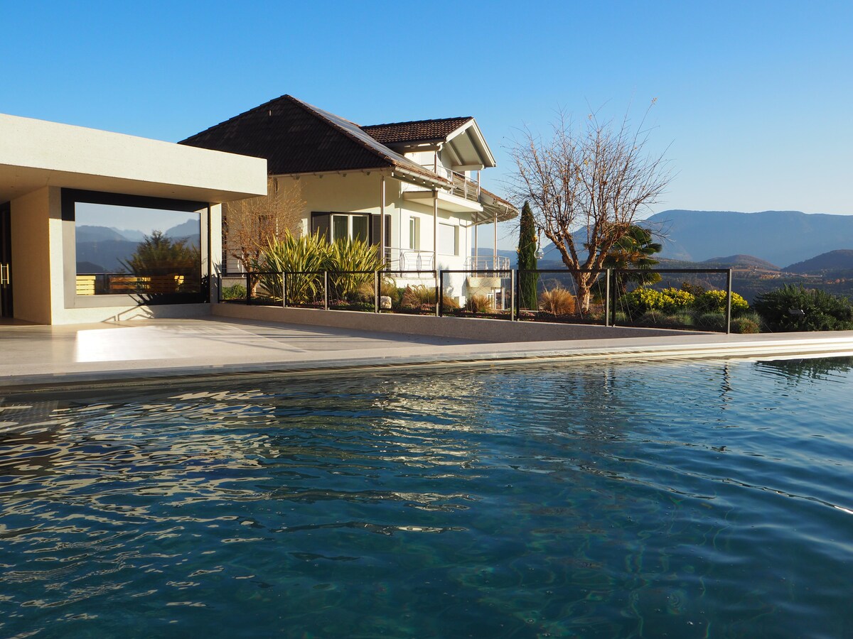 Liebevoll & modern eingerichtete Ferienwohnung, große Sonnenterasse mit bequemen Gartenmöbeln & das einzigartige Südtiroler Bergpanorama. Die Unterkunft in Kaltern liegt 5 entspannte Gehminuten vom hystorischen Ortskern entfernt. In unmittelbarer Nähe befinden sich u. a.: der Kalterer See, der Mendelpass, die Montiggler Seen und die Stadt Bozen. Die Unterkunft ist neu und überzeugt durch moderne Einrichtung & ihre idyllische, ruhige Lage. Zur Ruhe kommen, entspannen, Zweisamkeit genießen