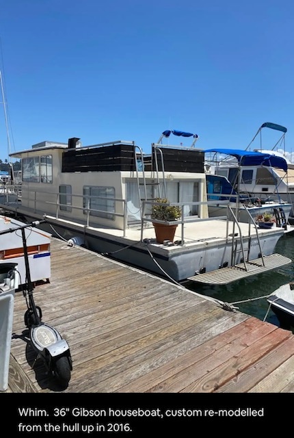 Now available again starting mid-March 2026! Discounts for 7+ nights automatically applied. WHIM is a stylish and customized 1980 Gibson houseboat (just 432 sq ft) featured in Refinery 29 and California Magazine for her light & airy interior redesign. She is a rare, live-aboard home on the water just a short walk to shops, cafes, restaurants, SF ferry, and more. Moored in Sausalito's banana belt, enjoy the full spectrum of micro-climates from Bay sunshine to fog rolling over the headlands.