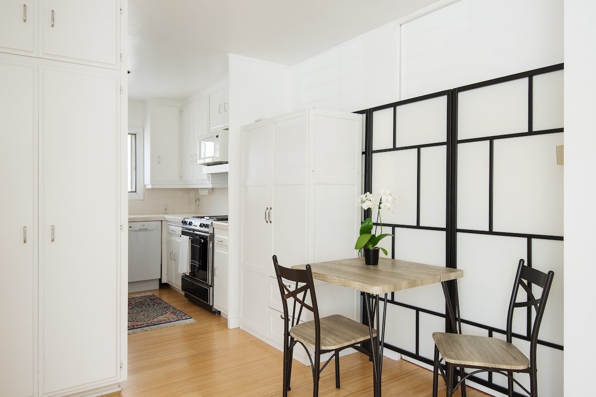 ☆ Björt, rúmgóð og loftgóð ☆ 1000/1000 Trefjar Internet ☆ Enterprise Grade wifi ☆ California King Bed ☆ Stór vinnusvæði ☆ myrkvunargardínur ☆ Þvottavél og þurrkari Þessi risíbúð tekur vel á móti þér með mikilli dagsbirtu og mjúkri sjávargolu í gegnum tvo stóra þakglugga. Vaknaðu undir stóra öskutrénu sem gnæfir yfir byggingunni. Tvö stór vinnusvæði og logandi hratt net bjóða þér að vinna heiman frá þér. Þetta er fullkominn staður til að stunda vinnu, slaka á og njóta Los Angeles en það er aðeins í nokkurra mínútna fjarlægð frá Venice Beach.