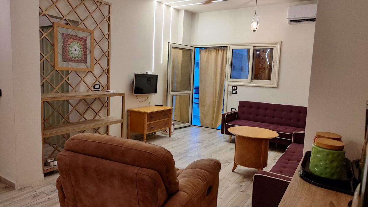 🌊 Lúxus 2 svefnherbergja íbúð með sjávar- og sundlaugarútsýni – The View Compound, Hurghada Njóttu afslappandi og þægilegrar dvalar í þessari rúmgóðu tveggja svefnherbergja íbúð sem er staðsett í The View Compound, einu þekktasta strandhverfi í hjarta Hurghada. Íbúðin er fullkomin fyrir fjölskyldur eða litla hópa og býður upp á stórkostlegt útsýni yfir sjóinn og sundlaugina, nútímaleg húsgögn í evrópskum stíl og aðgang að frábærum aðstöðu dvalarstaðarins. með einkaströnd og frábæru snorkli við kóralrif og fiska 🤿🐠