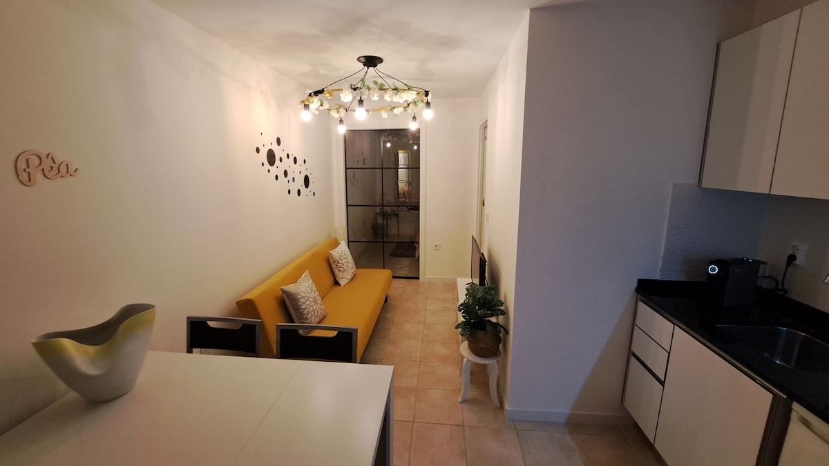 Apartamento T1 novo e moderno, com capacidade para acomodar até 4 pessoas (2 adultos com 1 ou 2 crianças / 3 adultos/ 3 adultos e 1 criança), constituído por um quarto com cama de casal, casa de banho, cozinha equipada e pequena sala com sofá-cama e TV. Com entrada independente e acesso direto a um pátio para desfrutar de momentos de lazer no exterior, este pequeno apartamento tem tudo o que é necessário para passar uns bons dias de descanso, perto de tudo e longe da confusão do centro da vila.