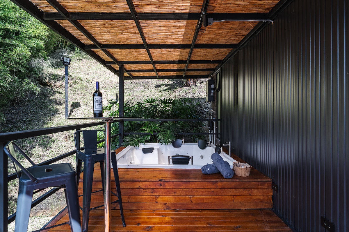 FORESTA is a modern cabin created with love for you to have an unforgettable stay in the middle of nature, with total comfort. Enjoy the privileged views from the deck, chill out in the jacuzzi, watch the dozens of birds that visit us, or have a chat by the fireplace in the living room. FORESTA is a great launchpad to explore Guatape, climb the Rock and do kayaking, jet-skiing, wakeboarding, sailing, paraglading, horseback riding, hiking, helicopter tours or ATV rides. You choose!