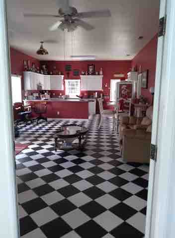 Íbúðin er á býli þar sem allt er gott og slæmt við sveitalífið. Gestir eru með rólega og friðsæla einangrun en aðeins 3 km frá 75 km. Fasteignin, sem er náttúrulega landslagshönnuð með risastórum furu- og eikartrjám, er kyrrlát og friðsæl. Það eru hestar báðum megin við 1/4 mílna aksturinn en það er með smá lykt og ryk. Ef þú ert viðkvæm/ur fyrir lykt gæti þetta ekki verið rétti staðurinn fyrir þig. Það er í innan við 3 km fjarlægð frá Route 75 og nálægt því að SKELLA sér, WEC & Chi institute.